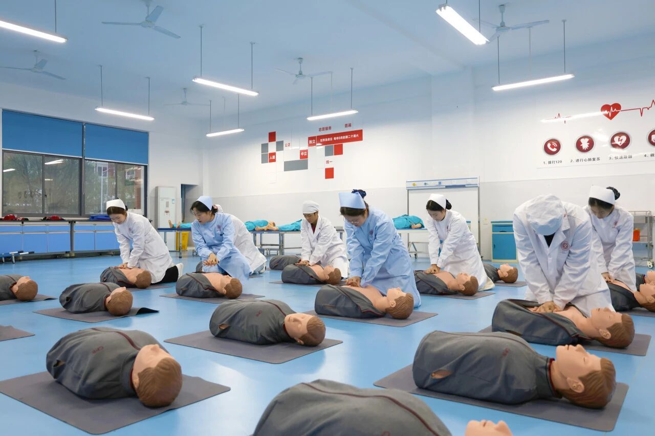 护理实训中心建成于2020年,建筑面积1.2万平方米,专业教学实验设备总值1000余万元。中心设有基础医学类实验室和护理技术实训室,包括解剖模型室、病理标本室、显微镜室以及内科护理、外科护理、妇产科护理等多个实训室。实训室配备有先进的护士站、病房呼叫对讲系统、中心供氧负压吸引系统等设备,以及多种护理模拟人、智能化教学系统等教学辅助工具,能够满足学生专业综合技能的实践教学需求。