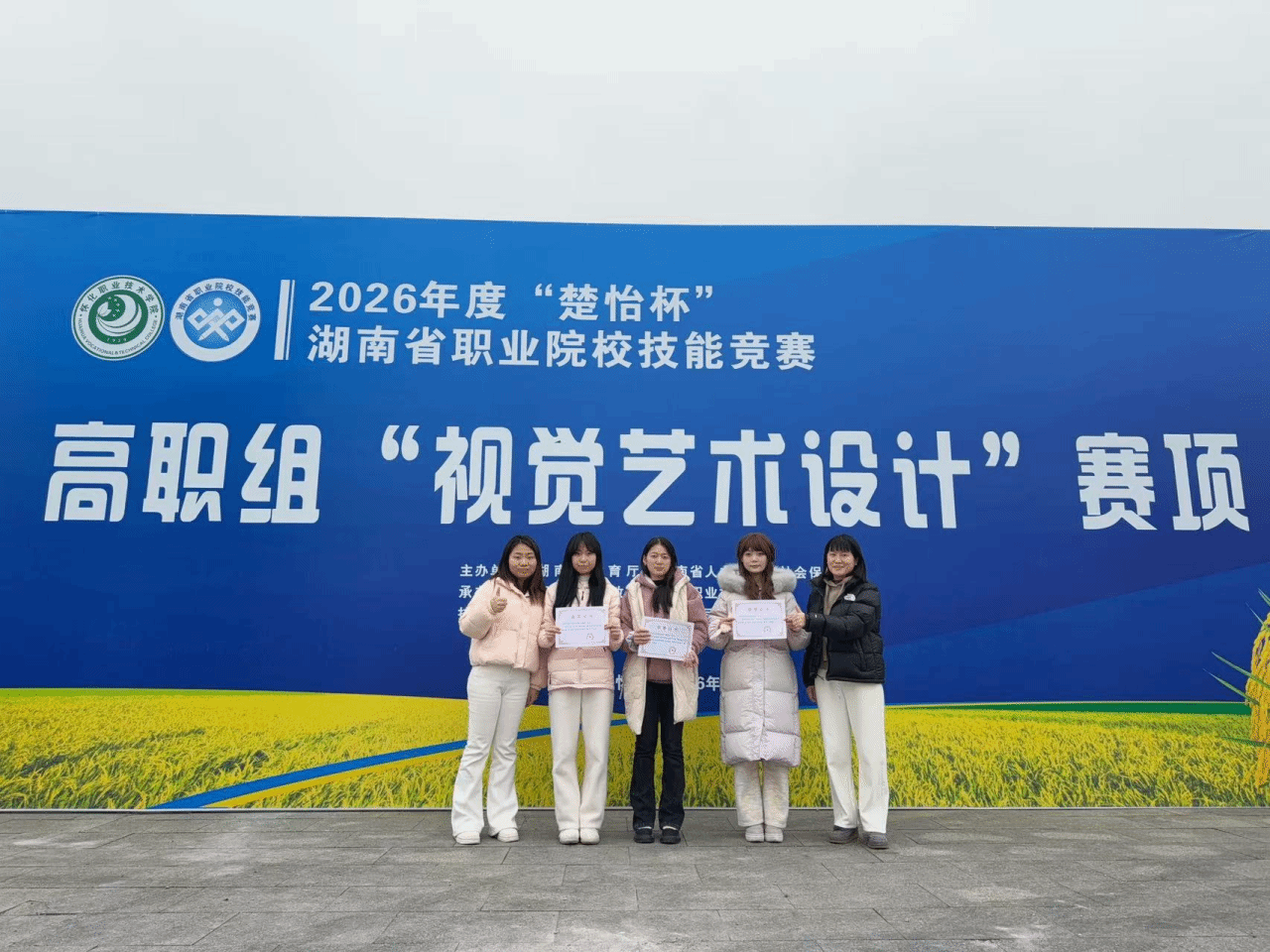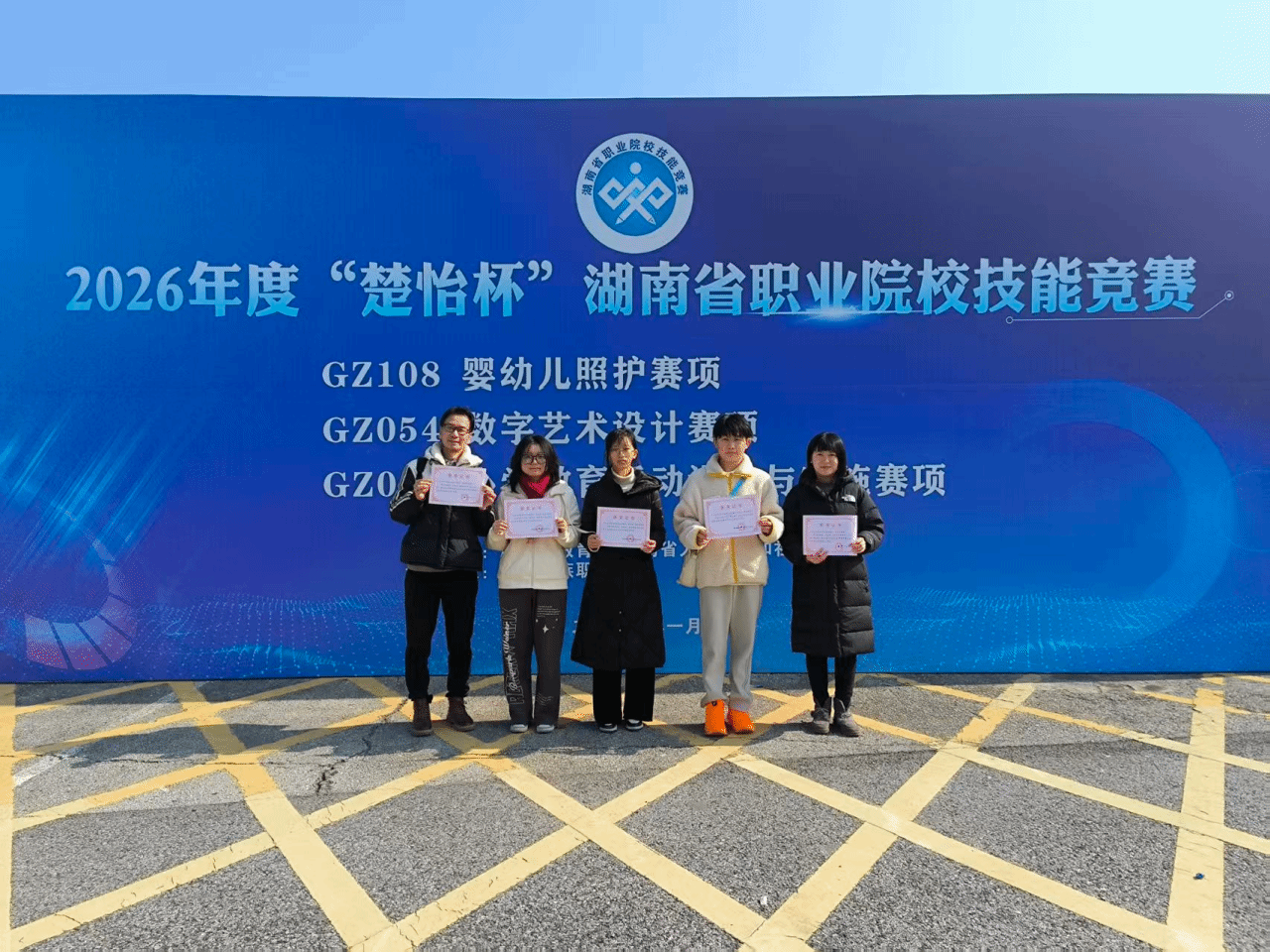 近日,由湖南省教育厅、湖南省人力资源和社会保障厅主办的 2026 年湖南省 “楚怡杯” 职业技能竞赛各项赛事陆续开展,我校新媒体艺术学院参赛学子凭借扎实的专业功底和出色的临场发挥,在赛场中脱颖而出,斩获数项殊荣。在短视频创作与运营赛项中,由贺金滢、王颖老师指导的罗若兰、刘思语、何承康、王宇获省二等奖,这是我校在该赛项成绩的历史新突破;在数字艺术设计赛项中,由刘孟为老师指导的孙俊豪、李思思、熊佳怡三位同学荣获三等奖,成为该赛项民办院校中唯一获奖单位;在视觉艺术设计赛项中,戴晓丹老师指导的朱顺群、肖雯同学成功斩获三等奖。