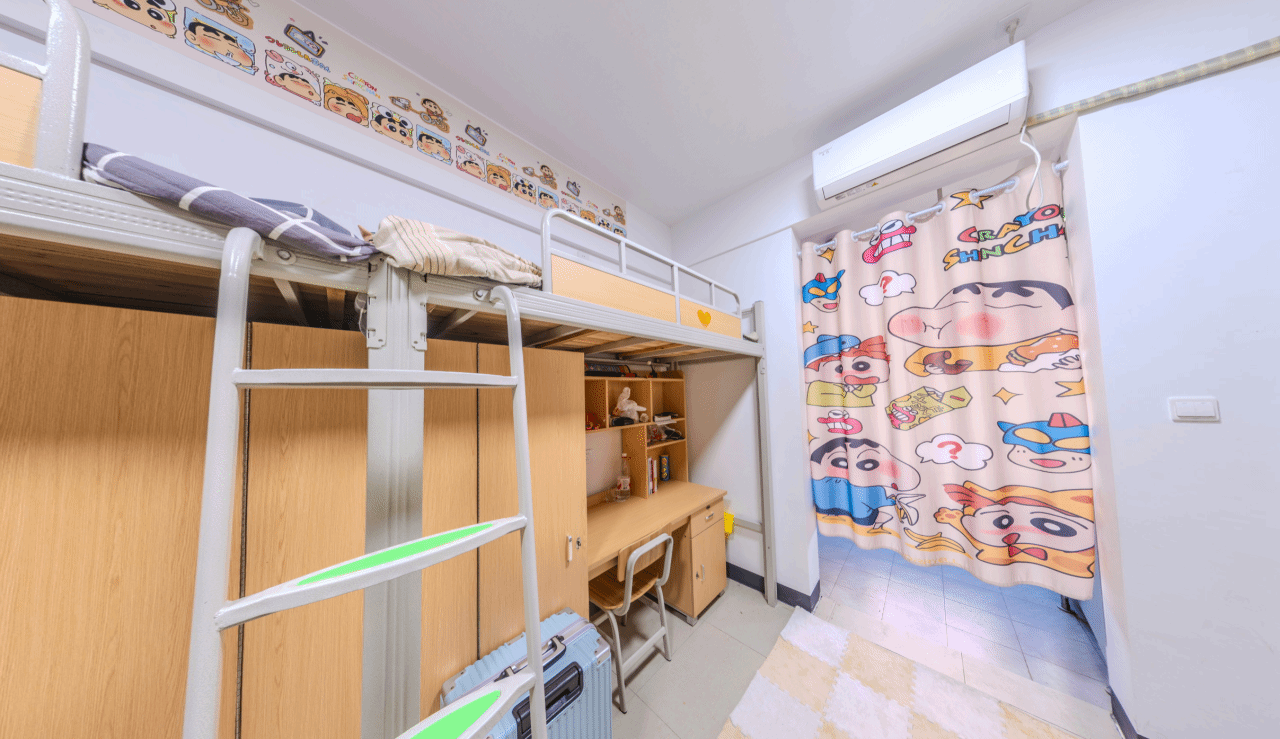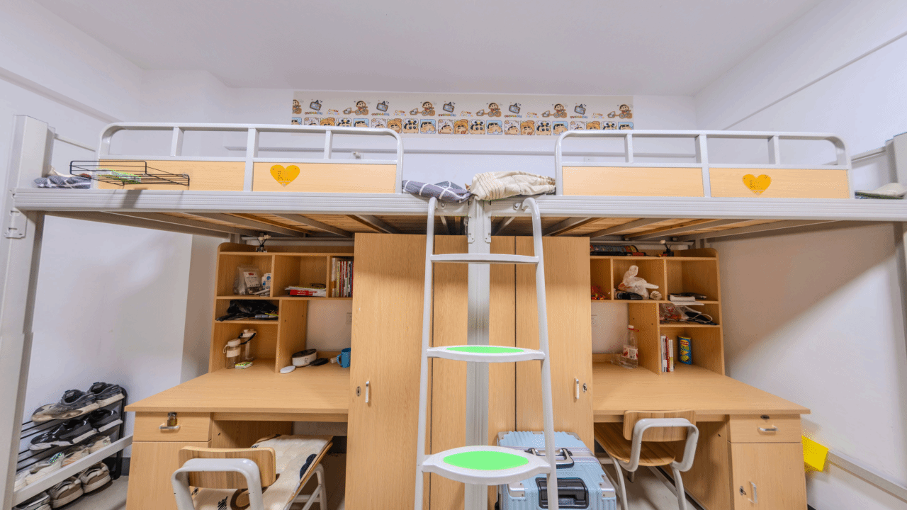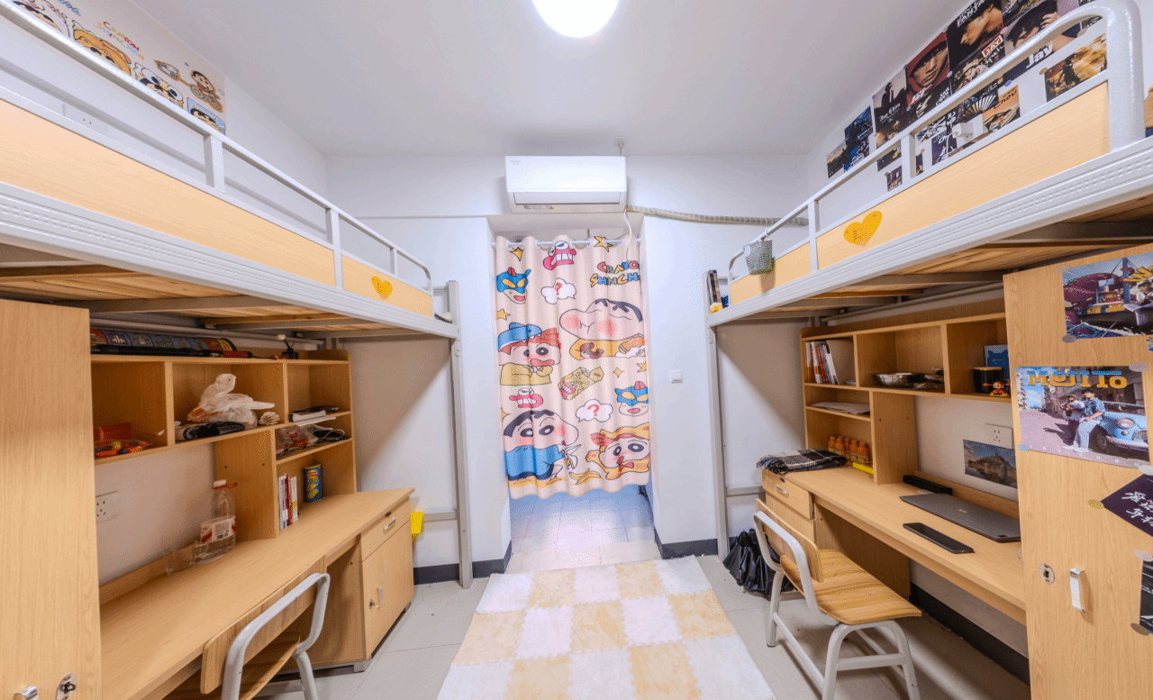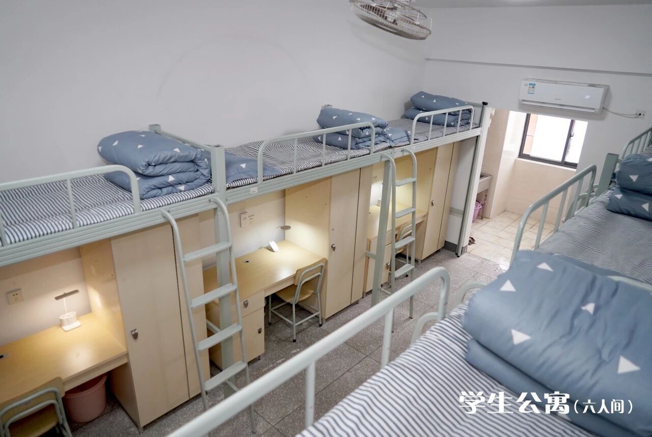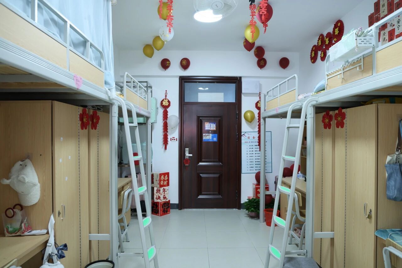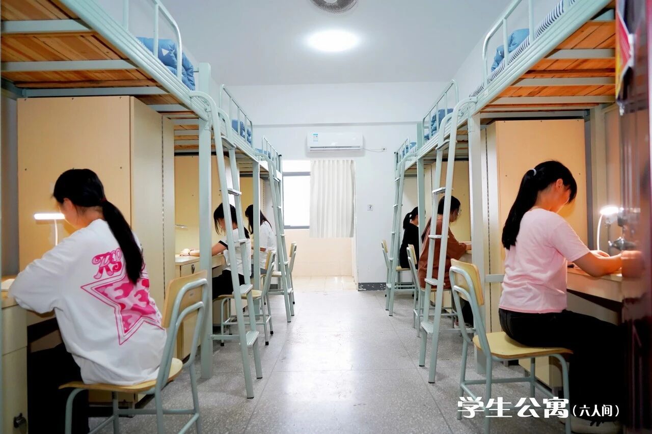 长文的学生宿舍均为 4-6 人间配置,统一采用现代实用的 “上床下桌” 经典布局,既保证了个人学习与生活的私密空间,又让宿舍的功能分区更加合理,个人空间宽裕舒适,真正实现了居住自由与学习效率的双重平衡,为学子营造出宜学宜居的宿舍环境。