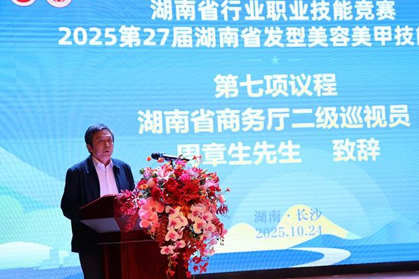 湖南省商务厅二级巡视员周章生在讲话中谈到,美容美发行业已成为湖南消费升级与民生就业的重要领域。目前全省行业从业人员超过120万,企业及服务门店超3.5万家,年营业收入达1200亿元。他期望本次竞赛要通过“以赛促技”激发行业创新活力,希望各方共同将湖南美业打造为全国行业的创新高地和人才沃土。