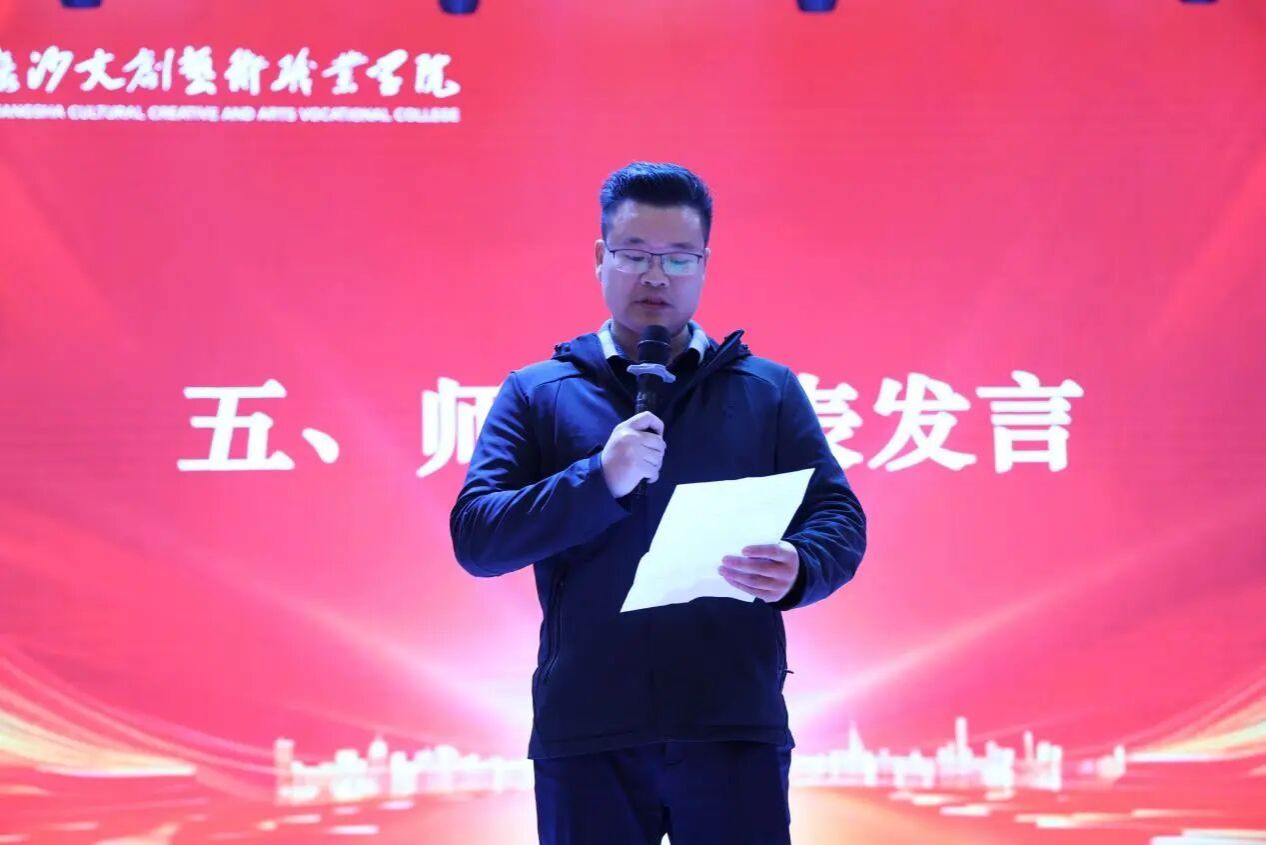 在庄重的仪式环节,余克泉校长为受聘导师颁发聘书,新老辅导员依次上台完成结对。鲜花与书籍的互换,不仅象征着师徒关系的建立,更承载着责任与使命的传承。导师代表与新辅导员代表的发言,充分展现了“匠心传承、携手共进”的坚定信念与队伍团结奋进的精神风貌。