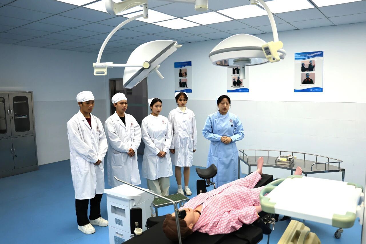 护理实训中心建成于2020年,建筑面积1.2万平方米,专业教学实验设备总值1000余万元。中心设有基础医学类实验室和护理技术实训室,包括解剖模型室、病理标本室、显微镜室以及内科护理、外科护理、妇产科护理等多个实训室。实训室配备有先进的护士站、病房呼叫对讲系统、中心供氧负压吸引系统等设备,以及多种护理模拟人、智能化教学系统等教学辅助工具,能够满足学生专业综合技能的实践教学需求。