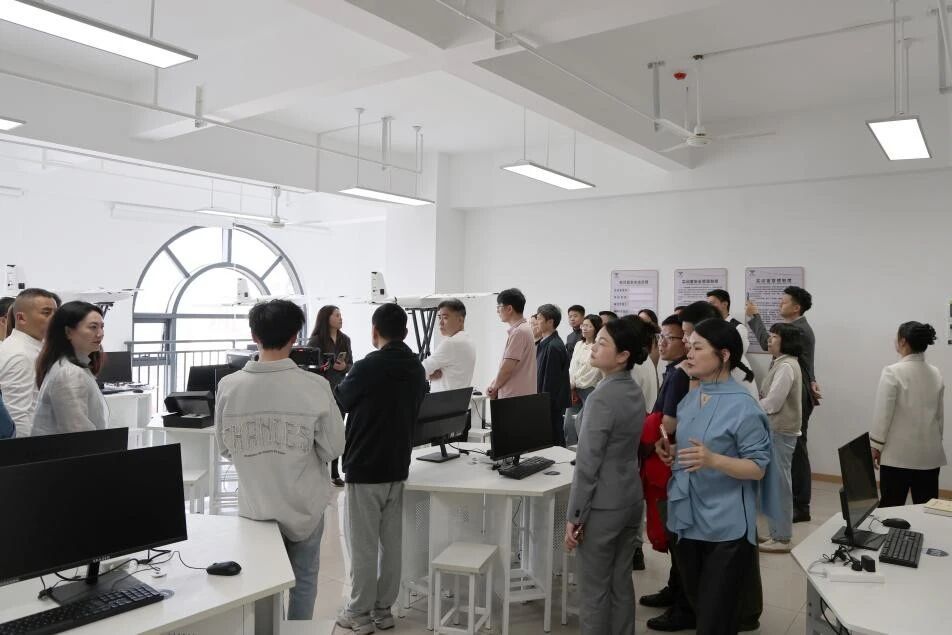 在校园参观环节,企业家代表团在学院相关负责人的陪同下,先后走进健康护理学院、医药医技学院、新媒体艺术学院、数智文旅学院、人工智能学院等重点实训场地。各二级学院专职讲解员分别详细介绍了各实训基地的建设理念、设备配置、教学模式及实践教学成果,展示了学院在高素质技术技能人才培养方面的坚实基础。企业家们兴致勃勃,主动上手体验实训设备与互动项目,对学校坚持“理实一体、知行合一”的教学模式给予高度评价,现场交流氛围热烈融洽。